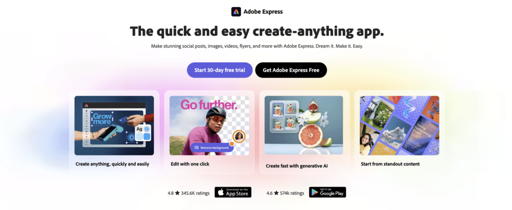 | Adobe Express | Fast branded content creation | Web + Mobile |
