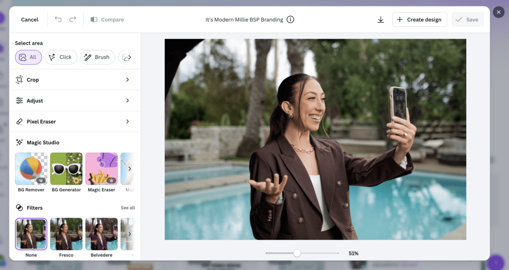At the end of the day, the best photo editing tool isn’t always the most popular one. It’s the one that fits your workflow, your skill level, and the kind of content that you’re creating right now. I actually use a mix of several tools in my own business, and I’ve worked with almost every tool in this guide at different stages in my career. My team currently relies on Adobe for many projects, we still use Canva, and when I was first starting out, VSCO was where all of my photo editing happened.