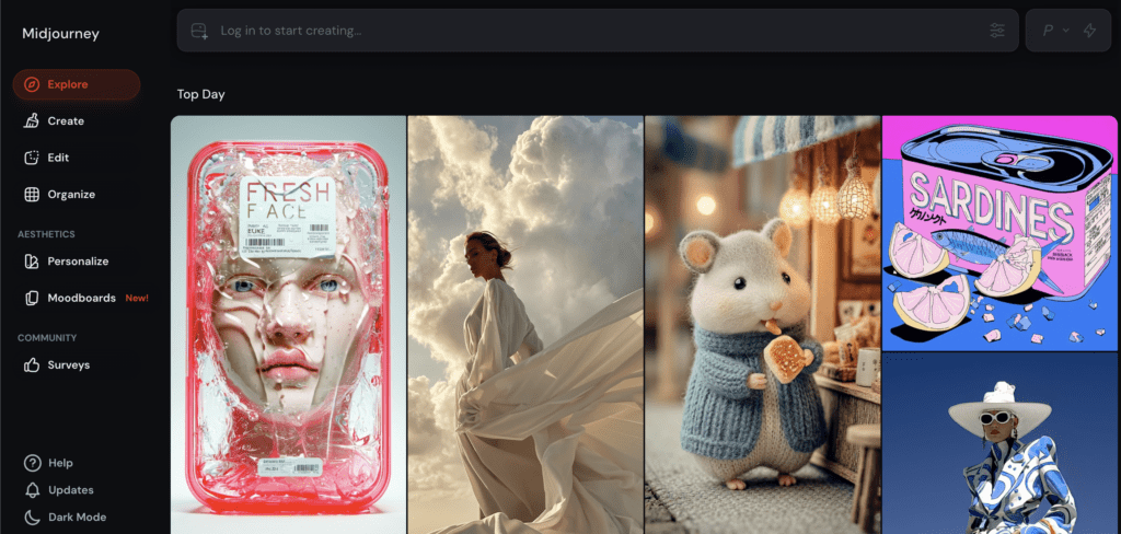 Midjourney is best used at the idea generation stage of your creative workflow or process. It’s ideal for creating concept visuals, campaign inspiration, or stylized social graphics that you’ll later refine in tools like Photoshop, Express, or Canva. For creators who want to move fast from idea to visual, Midjourney can drastically shorten the brainstorming phase, but it works best alongside photo editing software, not instead of it.
